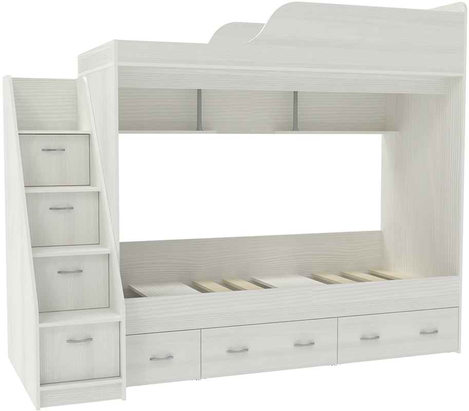 Двухъярусная кровать Дуэт-14 с лестницей комодом Белое Дерево Белое Дерево