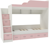 Вы можете купить Двухъярусная кровать КарИВи Дуэт-14 с лестницей Комод КарИВиом Белое Дерево Розовый оптом в нашем магазине, предложим цену с оптовой скидкой.