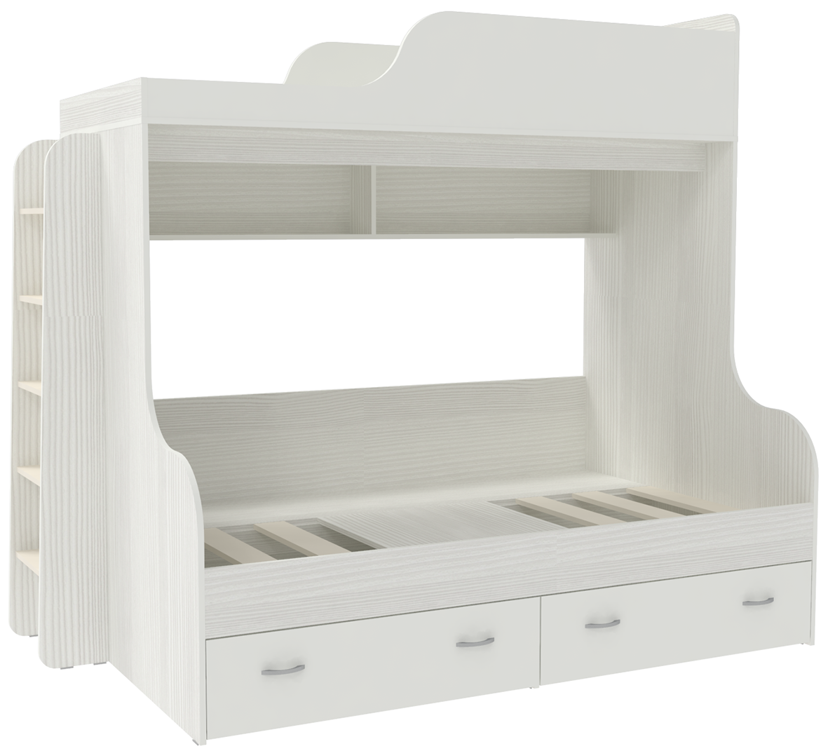 Вы можете купить Двухъярусная кровать КарИВи Дуэт-15 с деревянной лестницей Белое Дерево Белый оптом в нашем магазине, предложим цену с оптовой скидкой.