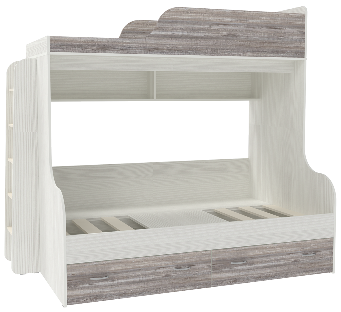 Вы можете купить Двухъярусная кровать КарИВи Дуэт-15 с деревянной лестницей Белое Дерево Бетон оптом в нашем магазине, предложим цену с оптовой скидкой.
