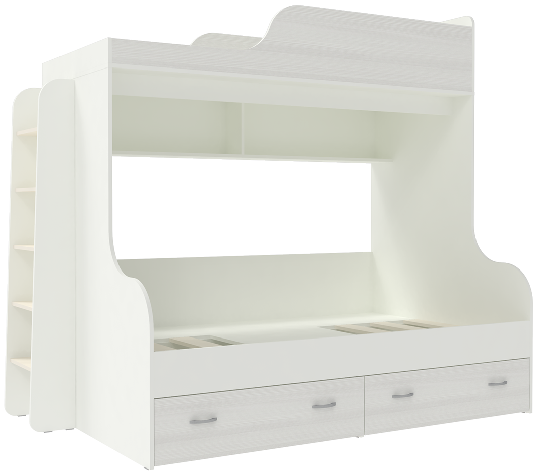 Вы можете купить Двухъярусная кровать КарИВи Дуэт-15 с деревянной лестницей Белый Белое Дерево оптом в нашем магазине, предложим цену с оптовой скидкой.