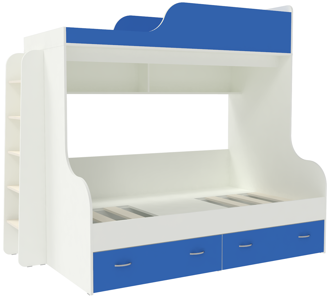 Вы можете купить Двухъярусная кровать КарИВи Дуэт-15 с деревянной лестницей Белый Светло-синий, голубой оптом в нашем магазине, предложим цену с оптовой скидкой.