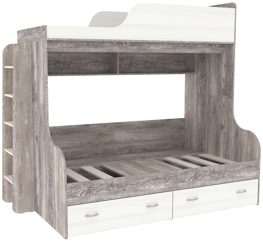 Вы можете купить Двухъярусная кровать КарИВи Дуэт-15 с деревянной лестницей Бетон Белое Дерево оптом в нашем магазине, предложим цену с оптовой скидкой.