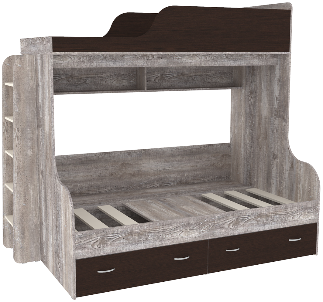 Вы можете купить Двухъярусная кровать КарИВи Дуэт-15 с деревянной лестницей Бетон Венге оптом в нашем магазине, предложим цену с оптовой скидкой.