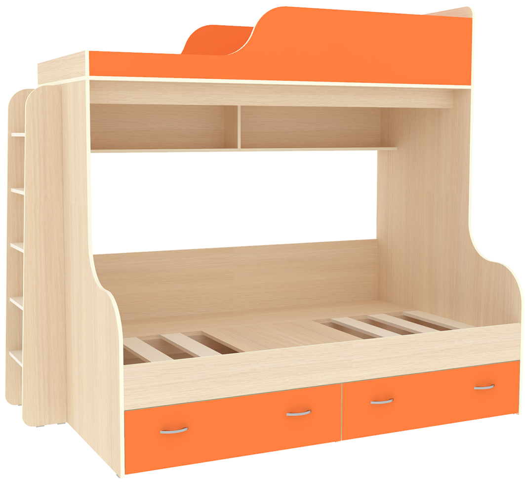 Вы можете купить Двухъярусная кровать КарИВи Дуэт-15 с деревянной лестницей Дуб Молочный Оранжевый оптом в нашем магазине, предложим цену с оптовой скидкой.