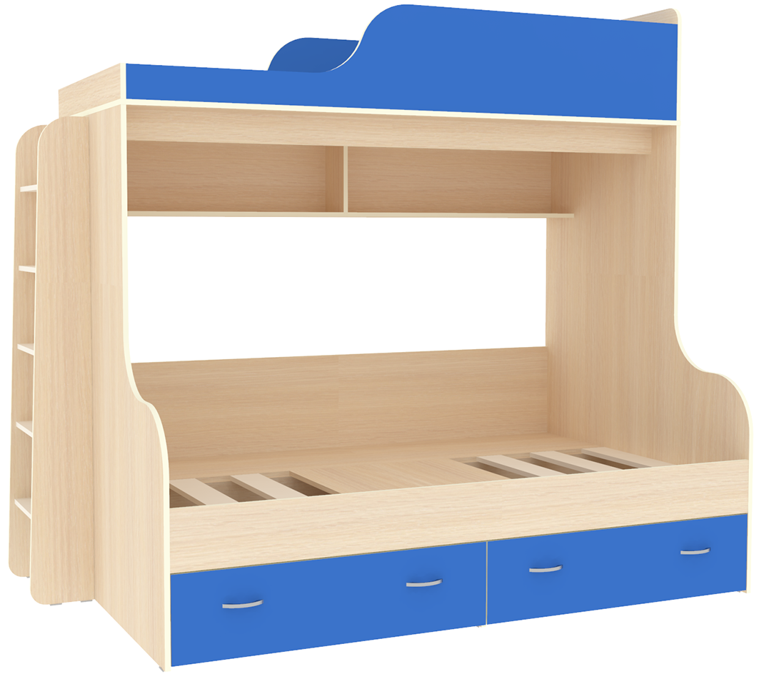 Вы можете купить Двухъярусная кровать КарИВи Дуэт-15 с деревянной лестницей Дуб Молочный Светло-синий, голубой оптом в нашем магазине, предложим цену с оптовой скидкой.