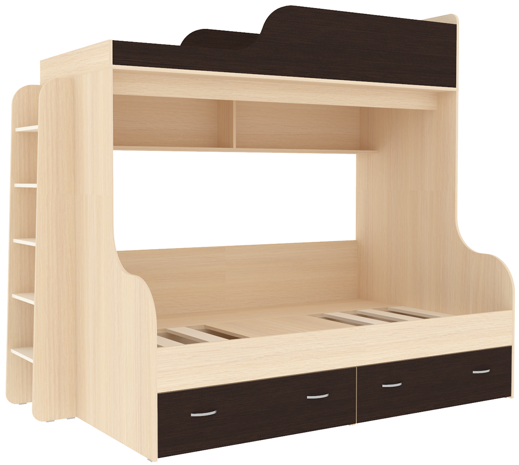 Вы можете купить Двухъярусная кровать КарИВи Дуэт-15 с деревянной лестницей Дуб Молочный Венге оптом в нашем магазине, предложим цену с оптовой скидкой.