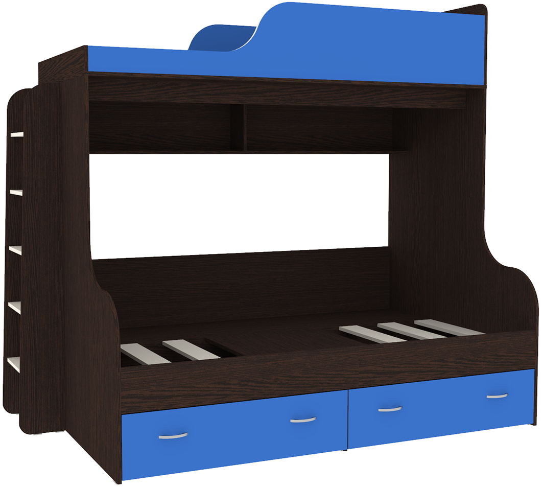 Вы можете купить Двухъярусная кровать КарИВи Дуэт-15 с деревянной лестницей Венге Светло-синий, голубой оптом в нашем магазине, предложим цену с оптовой скидкой.