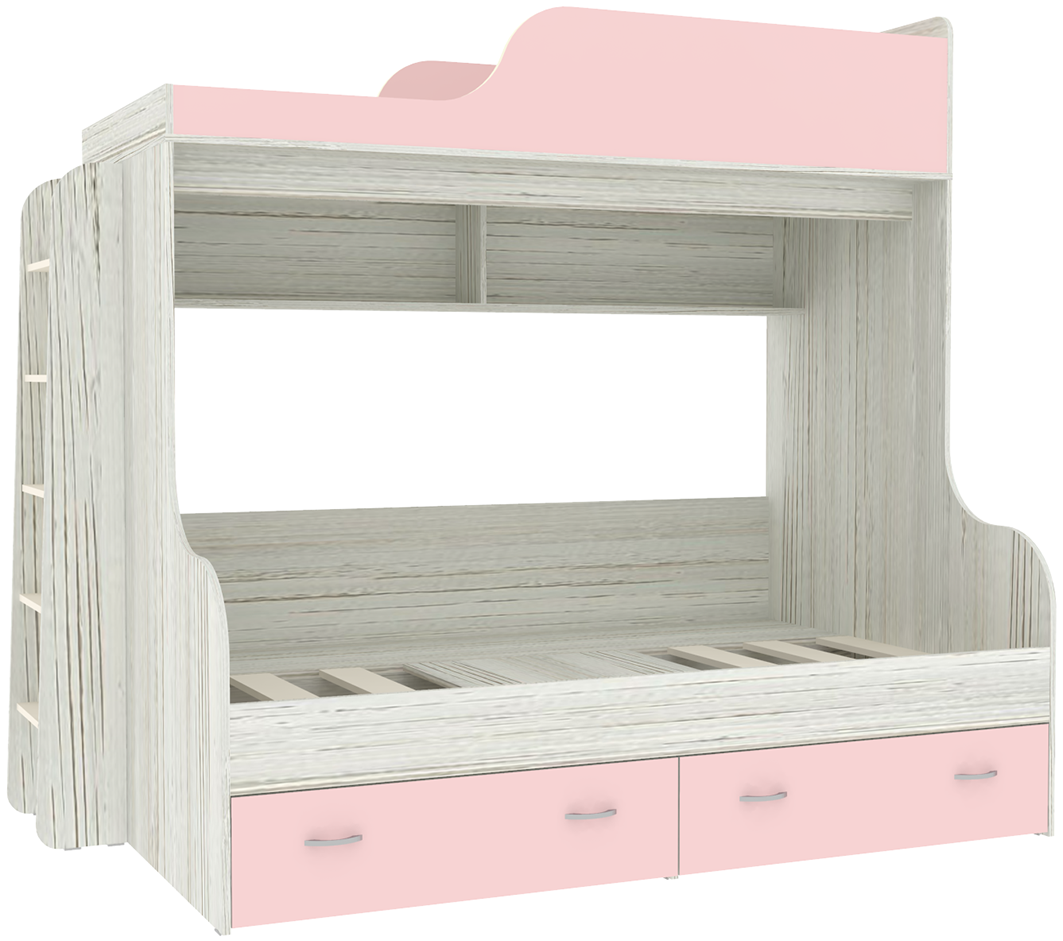 Вы можете купить Двухъярусная кровать КарИВи Дуэт-15 с деревянной лестницей Винтерберг Розовый оптом в нашем магазине, предложим цену с оптовой скидкой.