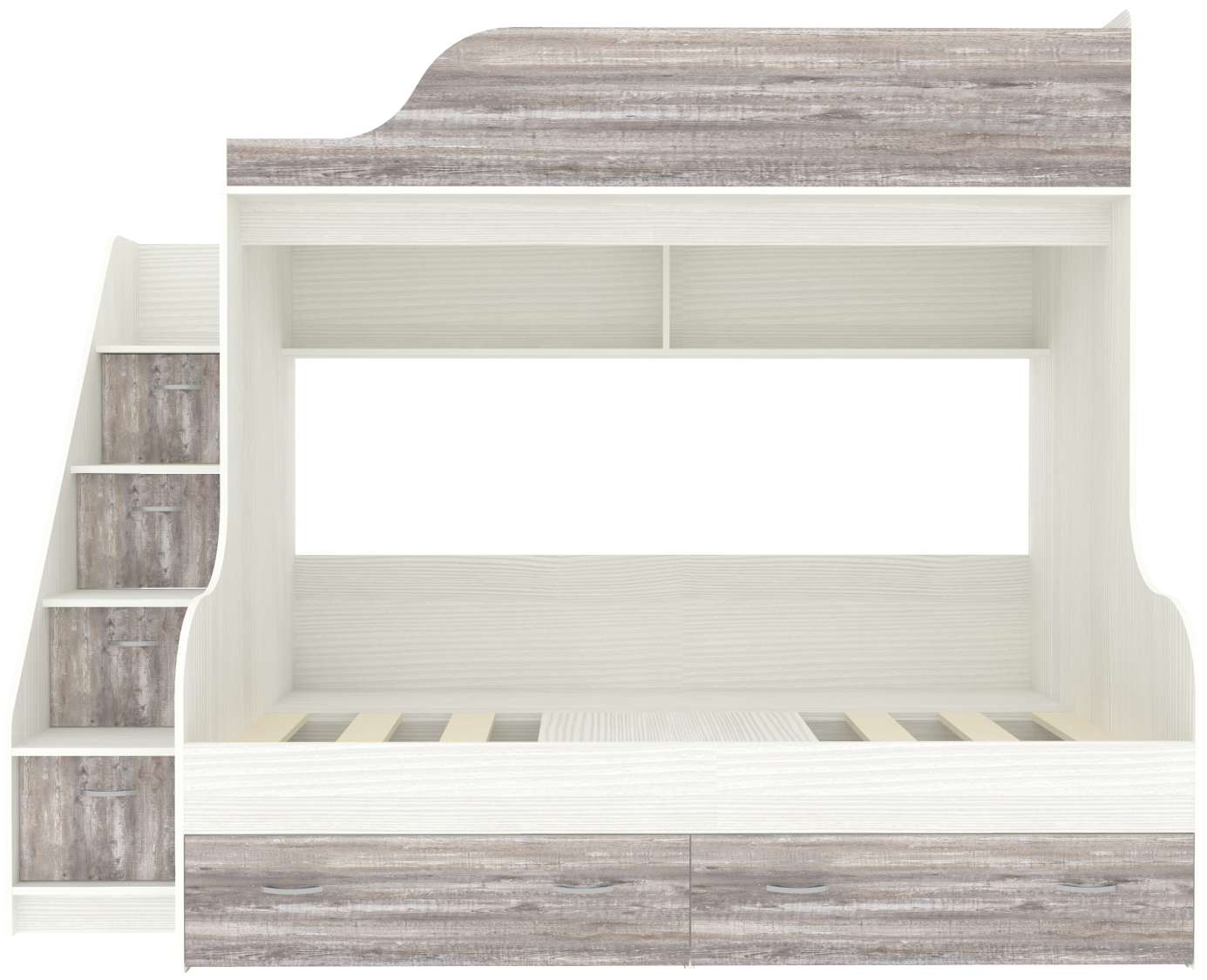 Двухъярусная кровать Дуэт-15 с лестницей комодом Белое Дерево Бетон