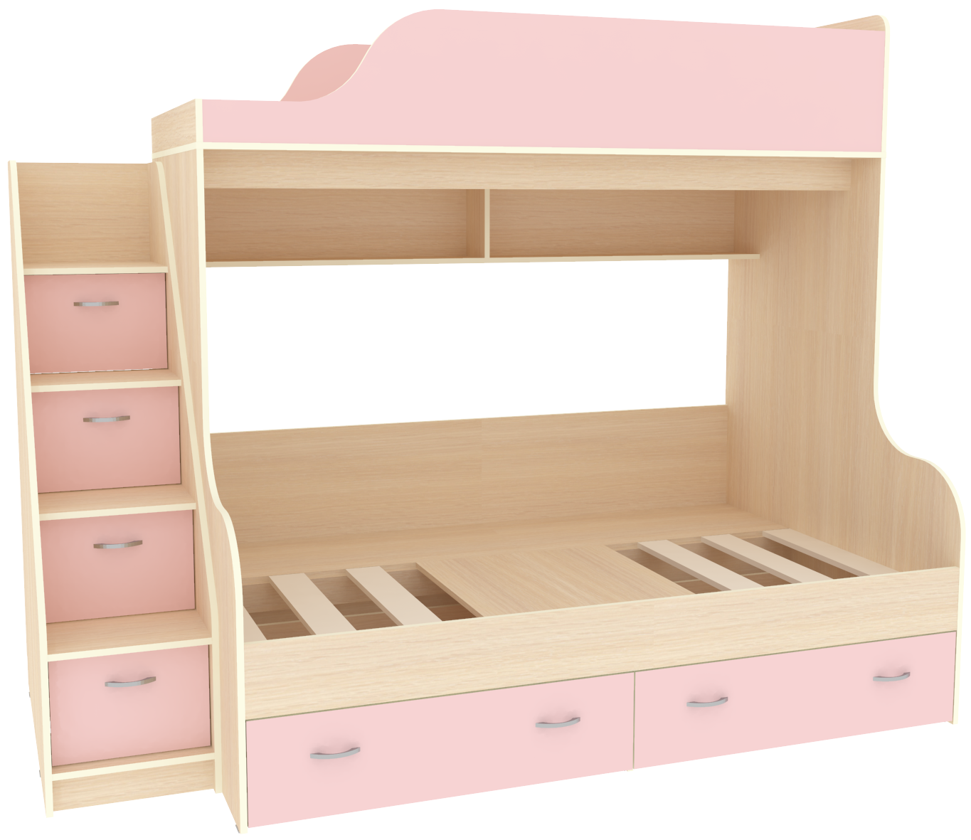 Вы можете купить Двухъярусная кровать КарИВи Дуэт-15 с лестницей Комод КарИВиом Дуб Молочный Розовый оптом в нашем магазине, предложим цену с оптовой скидкой.