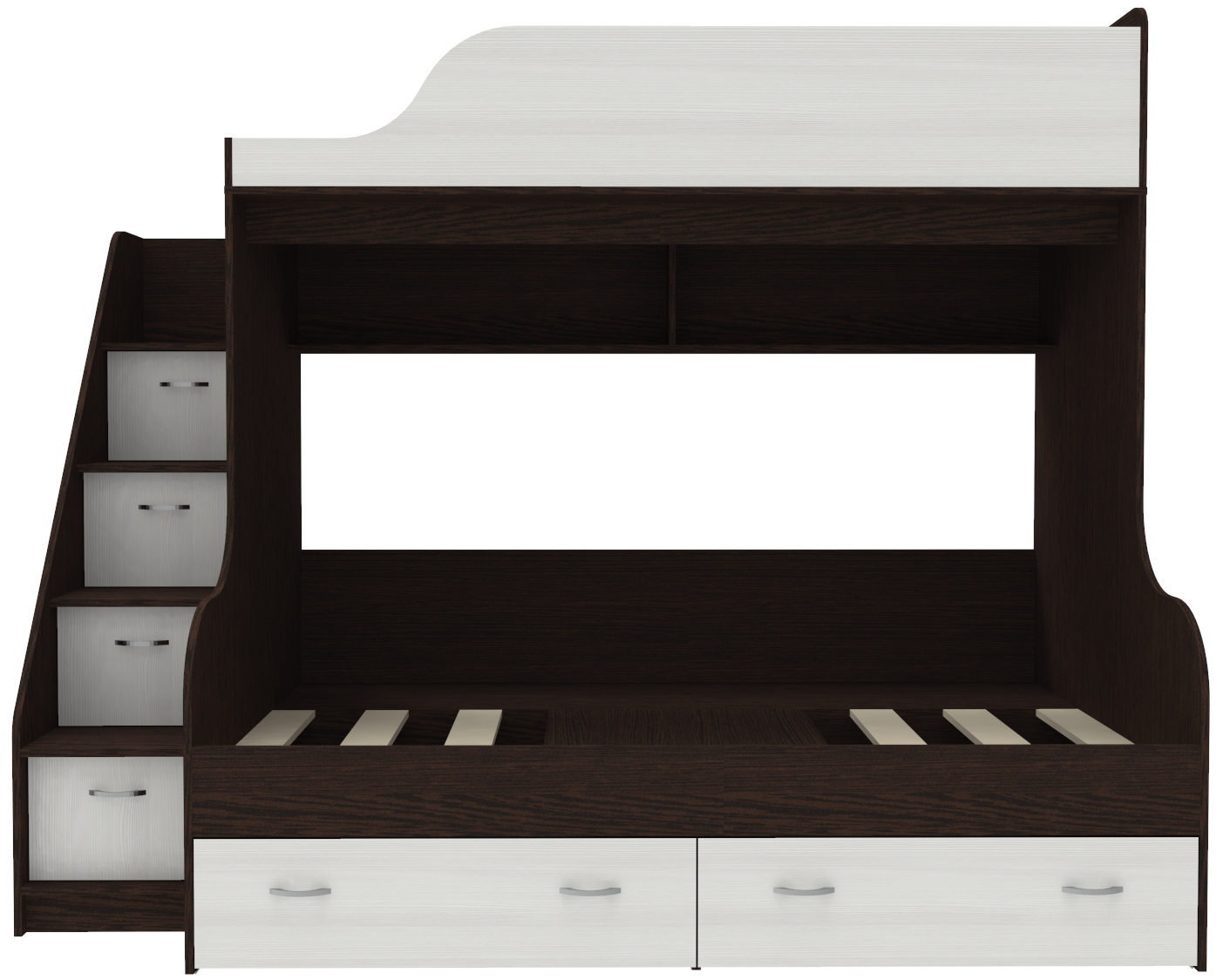 Двухъярусная кровать Дуэт-15 с лестницей комодом Венге Белое Дерево