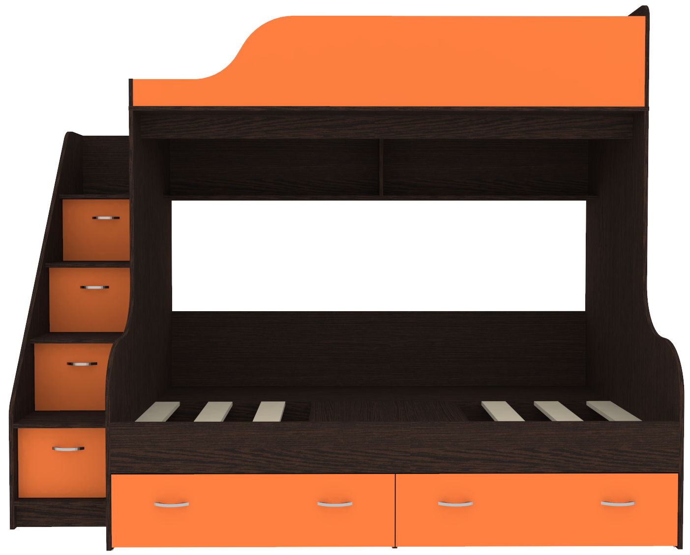 Вы можете купить Двухъярусная кровать КарИВи Дуэт-15 с лестницей Комод КарИВиом Венге Оранжевый оптом в нашем магазине, предложим цену с оптовой скидкой.