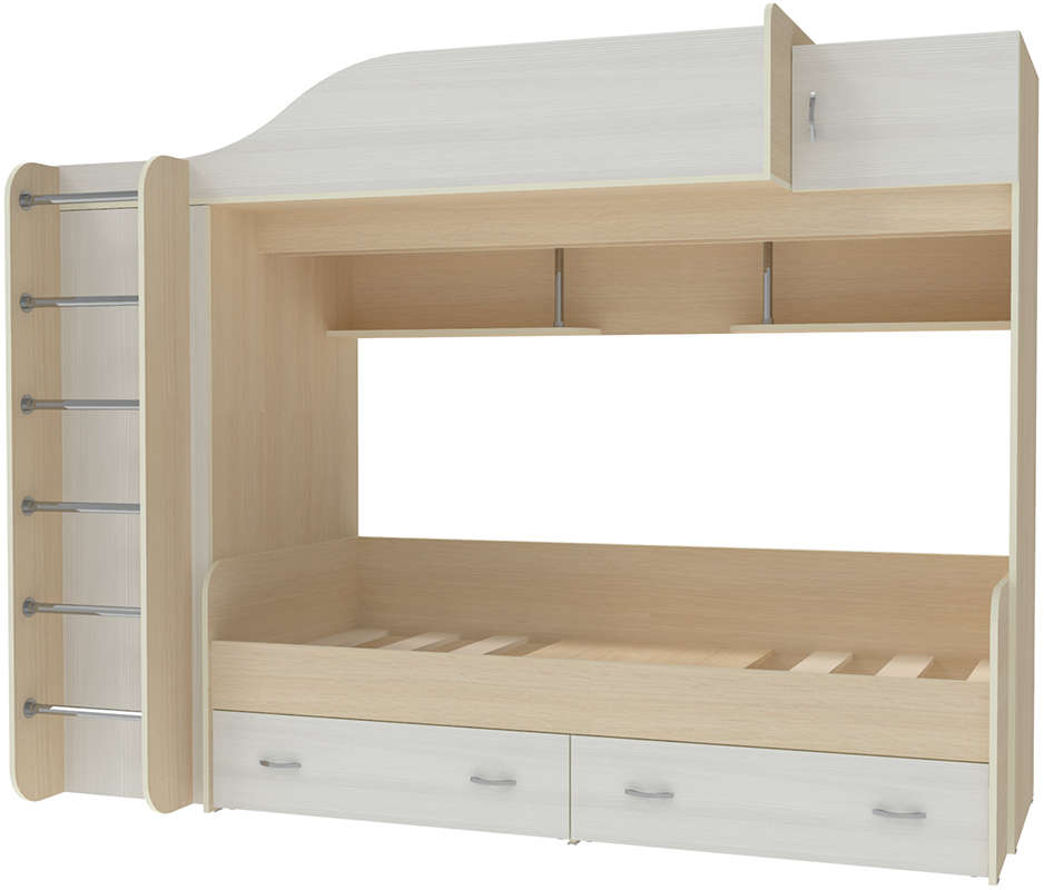 Двухъярусная кровать Дуэт-3 Дуб Молочный Белое Дерево