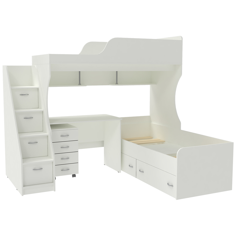 Вы можете купить Двухъярусная кровать КарИВи Дуэт-5 с лестницей Комод КарИВиом Белый Белый оптом в нашем магазине, предложим цену с оптовой скидкой.