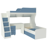 Двухъярусная кровать Дуэт-5 с лестницей комодом Белый Светло-синий, голубой
