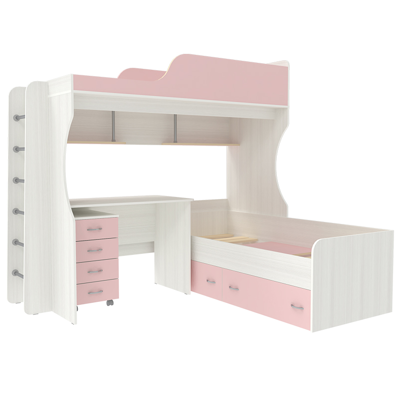 Вы можете купить Двухъярусная кровать КарИВи Дуэт-5 с металлической лестницей Белое Дерево Розовый оптом в нашем магазине, предложим цену с оптовой скидкой.