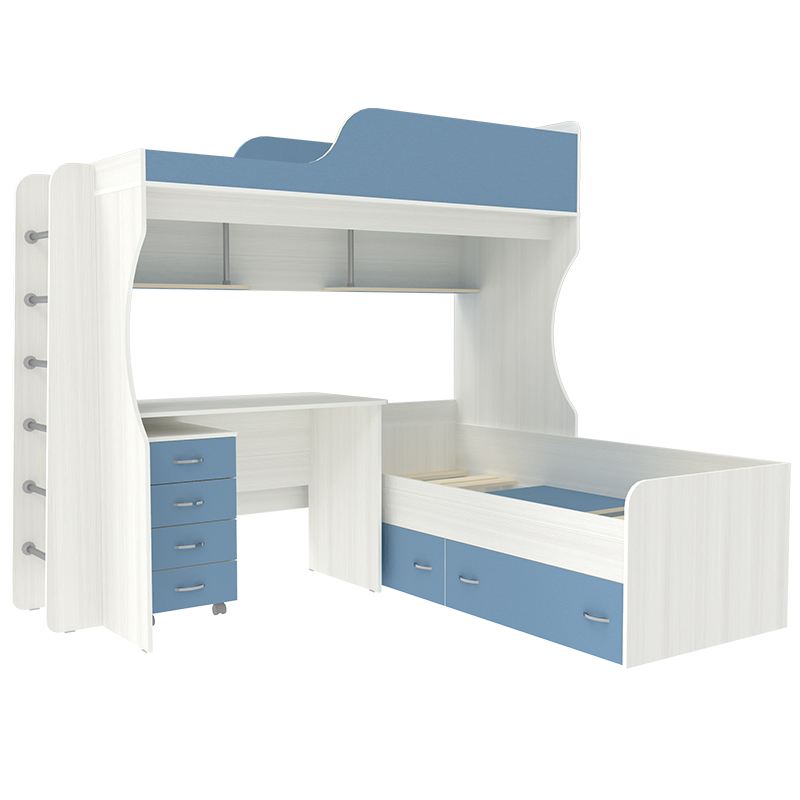 Вы можете купить Двухъярусная кровать КарИВи Дуэт-5 с металлической лестницей Белое Дерево Светло-синий, голубой оптом в нашем магазине, предложим цену с оптовой скидкой.