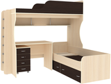 Детский уголок с двухъярусной кроватью и письменным столом для детей. Двухъярусная кровать Дуэт-5 сочетает в себе массу функционала и экономии места в детской комнате. Детская двухъярусная кровать для двоих детей занимает места не больше, чем для одного ребенка. Нижний ярус с кроватью не зависим от кровати чердака. Кровать нижнего яруса можно установить как параллельно верхнему ярусу, так и перпендикулярно, сбоку верхнего яруса. На цветных фасадах: цвет кромки - бежевый. Под верхним ярусом двухъярусной кровати Дуэт-5 имеются полку с отделениями для книг, учебников, тетрадей и письменных принадлежностей. Высота полки 284 мм, глубина 190 мм. Под кроватью нижнего яруса установлены ящики для постельного белья. Ящики на металлических, бесшумных, роликовых направляющих. Высота ящика 160 мм, глубина 600 мм. Главной особенностью детской двухъярусной кровати Дуэт-5 является независимость кровати нижнего яруса и стола, что позволяет расставлять мебель в удобном для Вас варианте.Габариты кровати верхнего яруса (Д*Г*В):193*84*192см Спальное место верхнего яруса:80 х 190 см. Габариты кровати нижнего яруса (Д*Г*В): 1895*815*650 мм. Спальное место нижнего яруса:75 х 185 см.Можно подобрать цвет, который понравится вам и вашему ребенку. Матрас к кровати приобретается отдельно.
