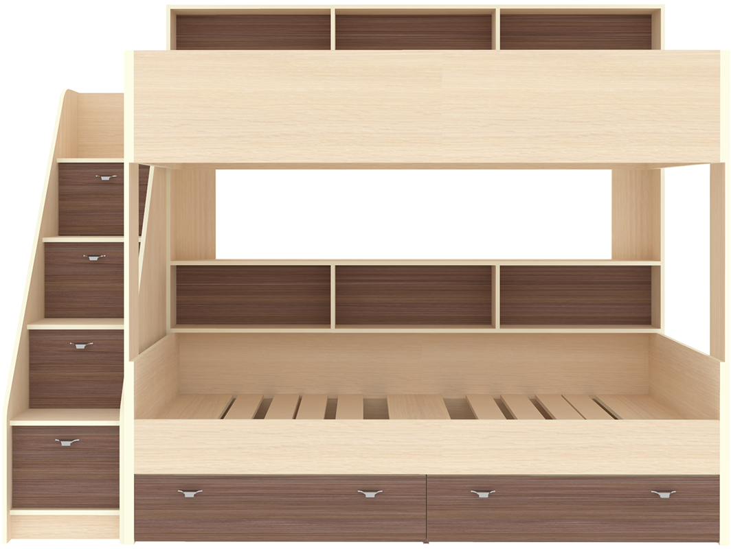 Двухъярусная кровать Golden kids 10. Спальные места: 190/90см. Максимальная нагрузка на каждое спальное место (с учетом матраса) до 120 кг. Материал - ламинированная ДСП толщиной 16мм. Модель универсал при сборке. Предназначена для двоих детей. В комплекте: два вместительных выкатных ящика для белья или игрушек, полки для книг и различных мелочей, лестница - комод. Цвет кромки на цветных фасадах - светло-бежевый. Дополнительно вы можете подобрать матрасы к данному товару.Характеристики
