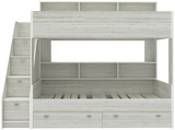 Двухъярусная кровать Golden kids 10. Спальные места: 190/90см. Максимальная нагрузка на каждое спальное место (с учетом матраса) до 120 кг. Материал - ламинированная ДСП толщиной 16мм. Модель универсал при сборке. Предназначена для двоих детей. В комплекте: два вместительных выкатных ящика для белья или игрушек, полки для книг и различных мелочей, лестница - комод. Цвет кромки на цветных фасадах - светло-бежевый. Дополнительно вы можете подобрать матрасы к данному товару.Характеристики