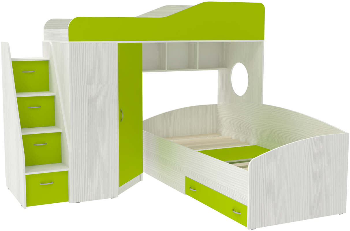 Вы можете купить Двухъярусная кровать КарИВи Кадет 2 с универсальной лестницей Белое Дерево Лайм оптом в нашем магазине, предложим цену с оптовой скидкой.