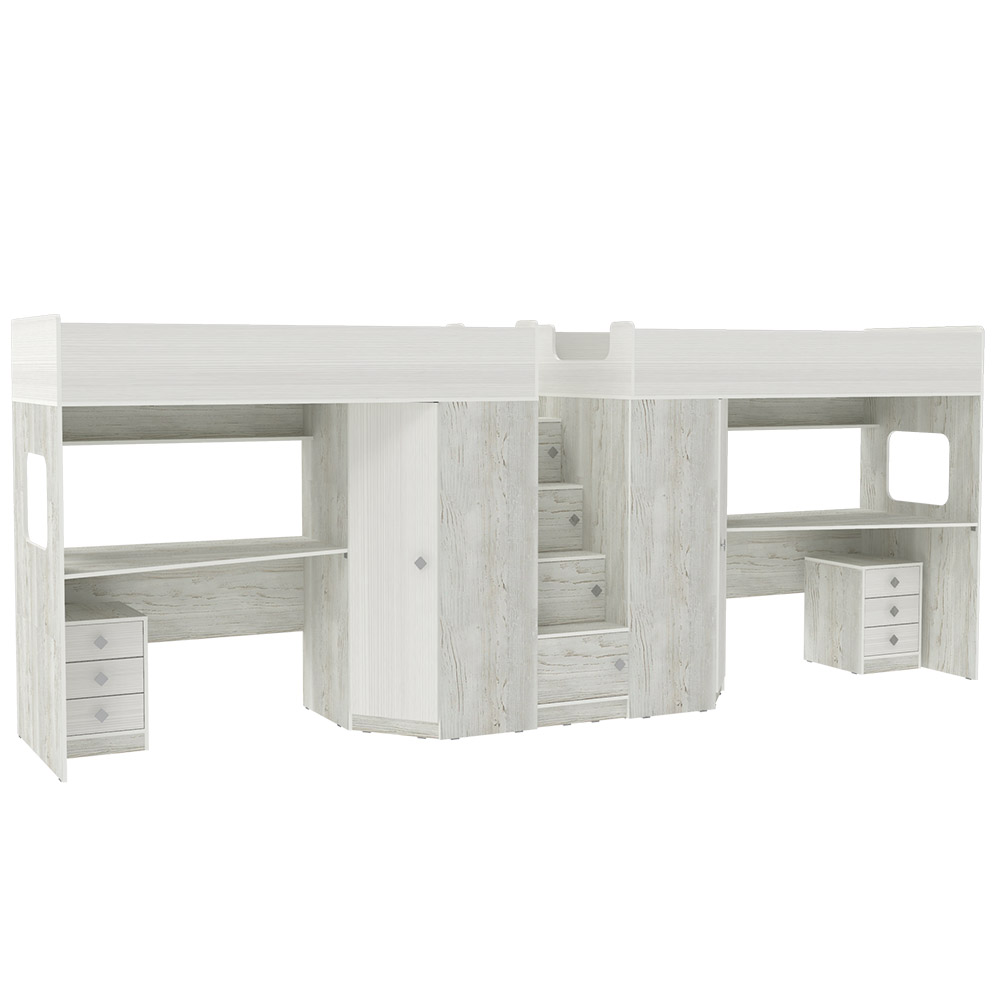 Вы можете купить Двухъярусная кровать КарИВи Л-BB604-604 с тумбами 80х190 Винтерберг Белое Дерево оптом в нашем магазине, предложим цену с оптовой скидкой.