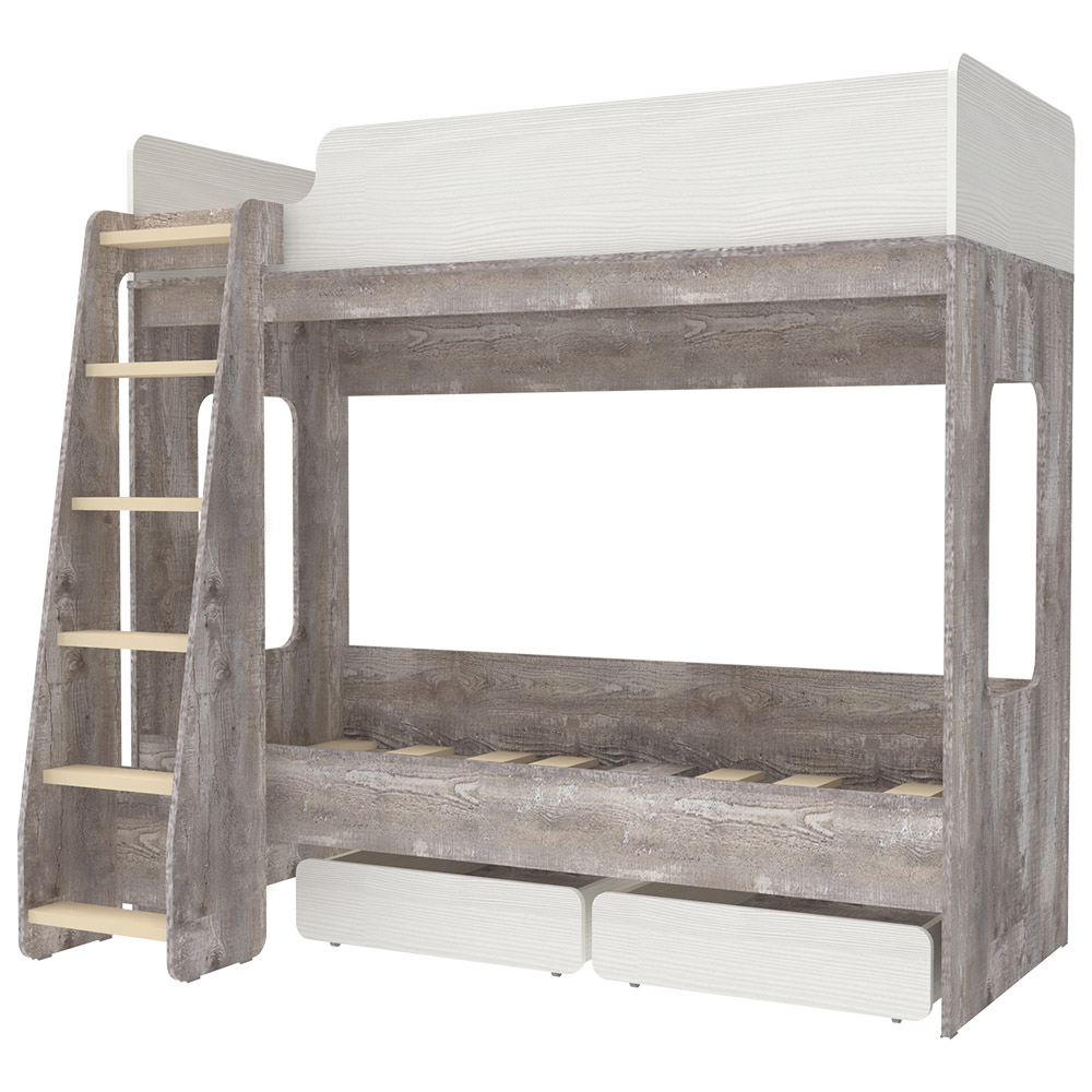Двухъярусная кровать Л-Д601.2 с ящиками 75x175 Бетон Белое Дерево