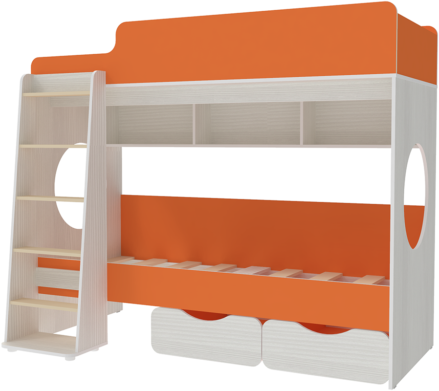Двухъярусная кровать Легенда 7.1 Белое Дерево Оранжевый