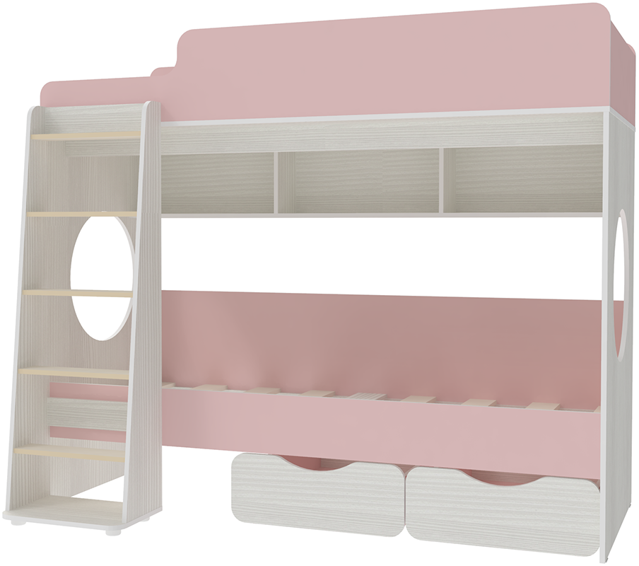 Двухъярусная кровать Легенда 7.1 Белое Дерево Розовый