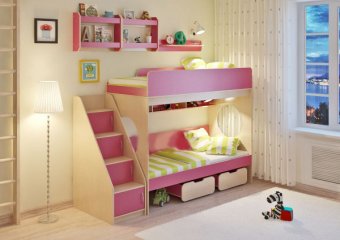 Г отовая комната для Вашего ребенка, которая совмещает в себе спальное место, вместительное место для одежды, выдвижной стол и игровую зону. Большое количество оттенков помогут подобрать мебель по вкусу ребенку и интерьеру комнаты, а большое разнообразие комплектаций и размеров поможет вписать детскую комнату даже в любую малогабаритную квартиру. Комплектация: Кровать двухъярусная Л-7 1952×846×1675 Лестница угловая ЛУ-10 484×795×1356 Фасады к ЛУ-10 444х252х16 Ящик (2 шт.) 1952×846×1675 Полка Л-02 (2 шт) 626х150х476 Полка Л-01 800х156х140 Модель универсальна - сторона определяется при сборке. Матрасы в комплект не входят - приобретаются отдельно.Характеристики