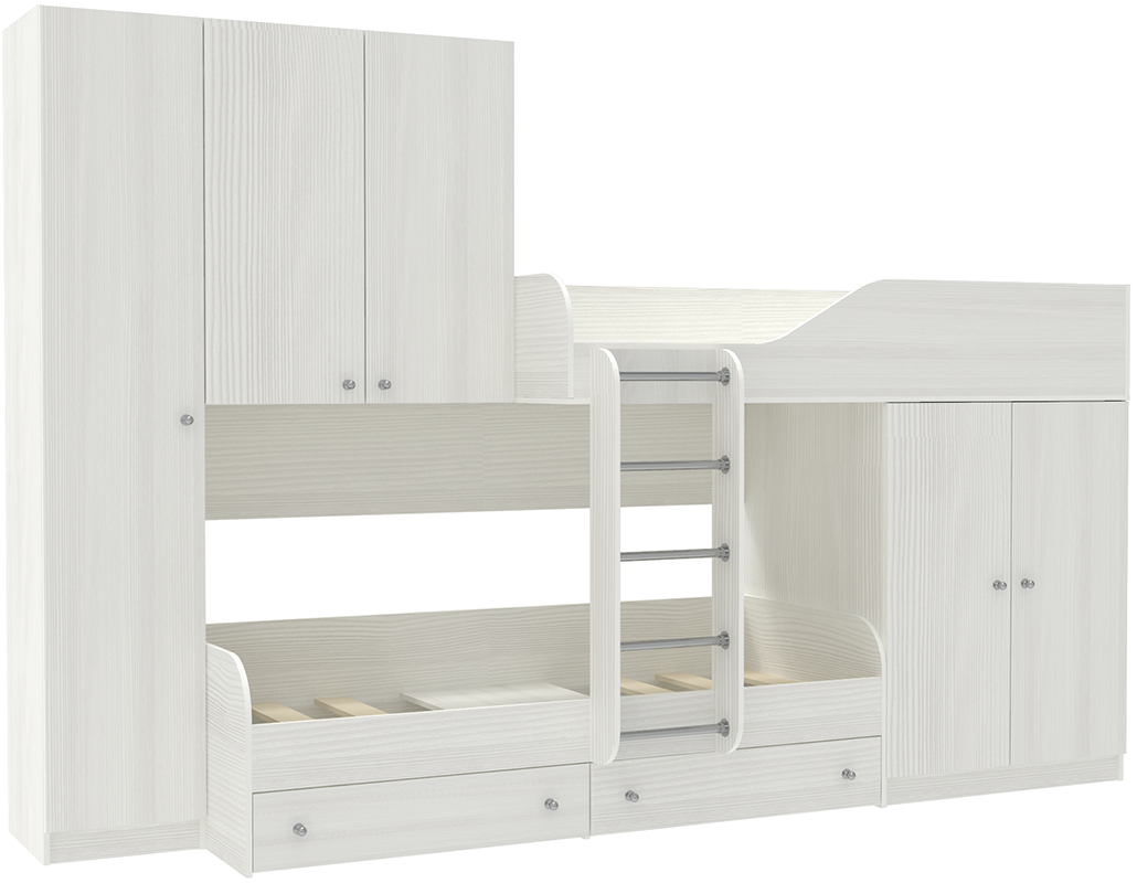 Двухъярусная кровать Лео Белое Дерево Белое Дерево