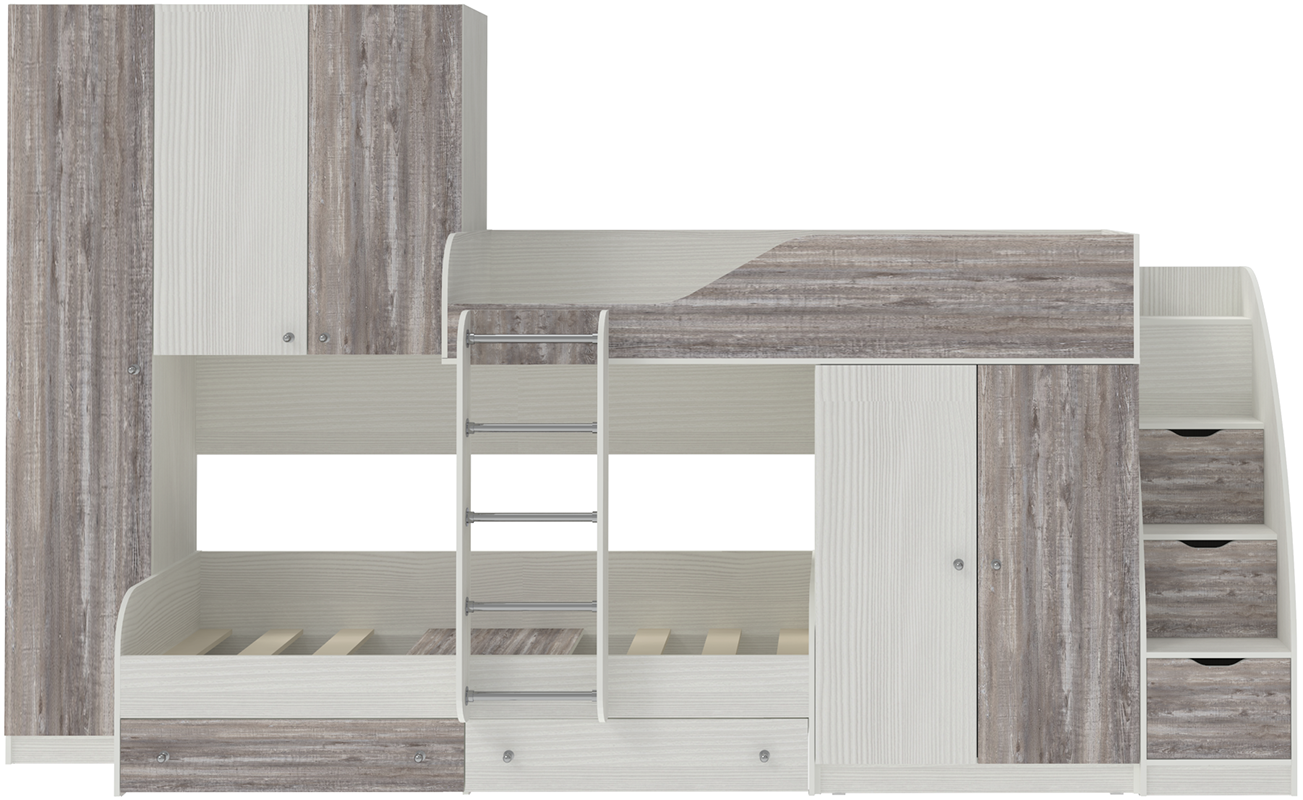 Вы можете купить Двухъярусная кровать КарИВи Лео с лестницей Комод КарИВиом Белое Дерево Бетон оптом в нашем магазине, предложим цену с оптовой скидкой.