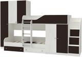 Двухъярусная кровать Лео с лестницей комодом Белое Дерево Венге
