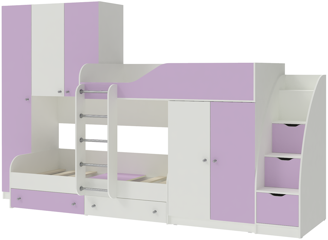 Вы можете купить Двухъярусная кровать КарИВи Лео с лестницей Комод КарИВиом Белый Ирис оптом в нашем магазине, предложим цену с оптовой скидкой.