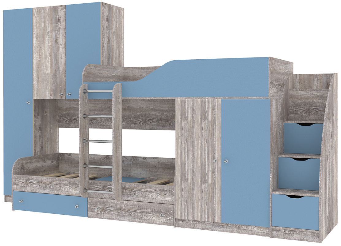 Вы можете купить Двухъярусная кровать КарИВи Лео с лестницей Комод КарИВиом Бетон Светло-синий, голубой оптом в нашем магазине, предложим цену с оптовой скидкой.