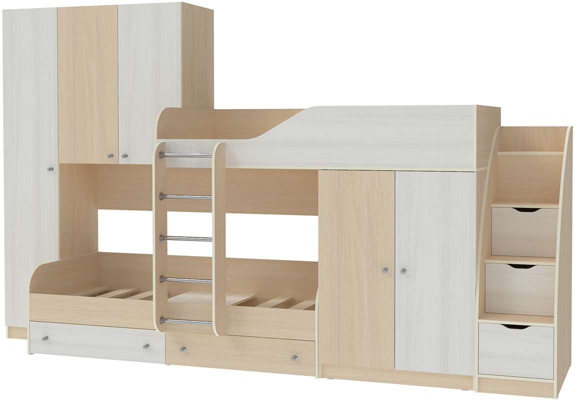 Вы можете купить Двухъярусная кровать КарИВи Лео с лестницей Комод КарИВиом Дуб Молочный Белое Дерево оптом в нашем магазине, предложим цену с оптовой скидкой.