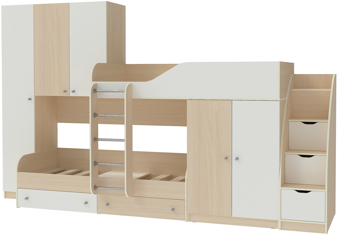 Вы можете купить Двухъярусная кровать КарИВи Лео с лестницей Комод КарИВиом Дуб Молочный Белый оптом в нашем магазине, предложим цену с оптовой скидкой.