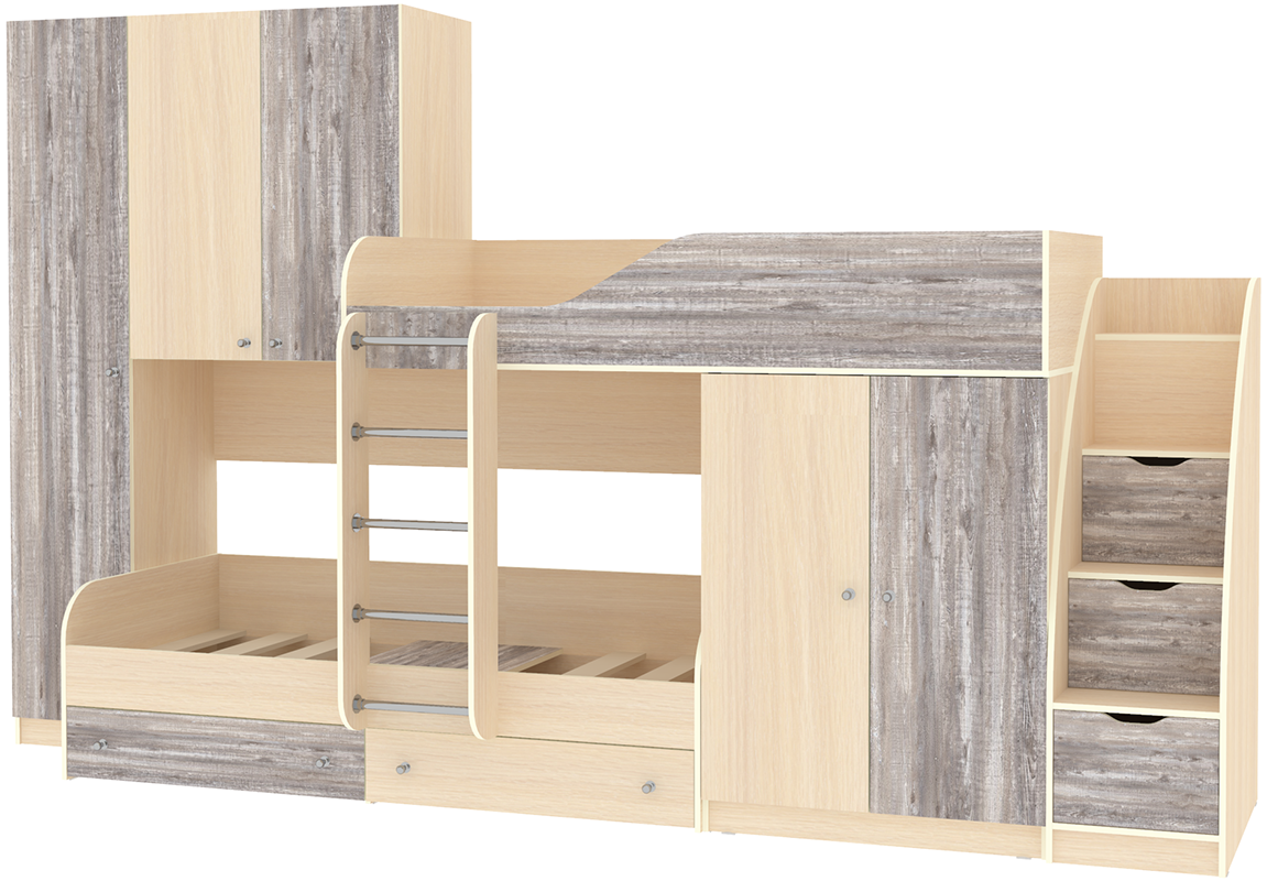 Вы можете купить Двухъярусная кровать КарИВи Лео с лестницей Комод КарИВиом Дуб Молочный Бетон оптом в нашем магазине, предложим цену с оптовой скидкой.