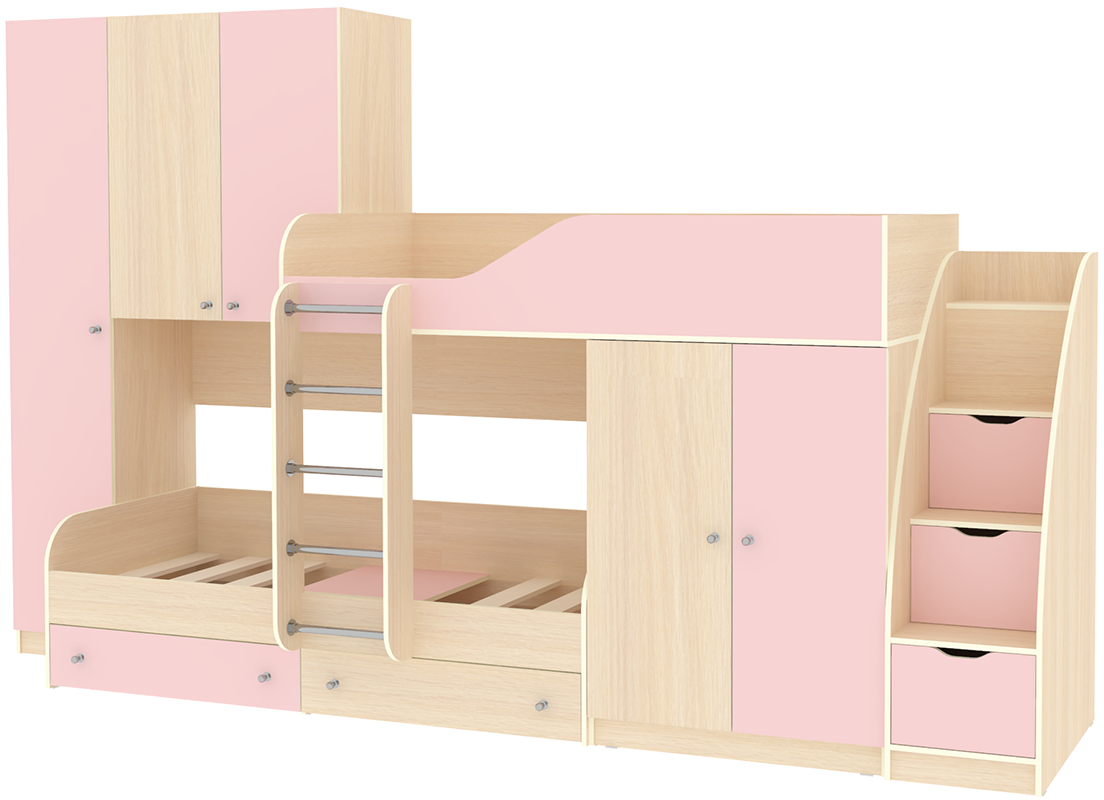 Вы можете купить Двухъярусная кровать КарИВи Лео с лестницей Комод КарИВиом Дуб Молочный Розовый оптом в нашем магазине, предложим цену с оптовой скидкой.