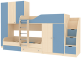 Вы можете купить Двухъярусная кровать КарИВи Лео с лестницей Комод КарИВиом Дуб Молочный Светло-синий, голубой оптом в нашем магазине, предложим цену с оптовой скидкой.