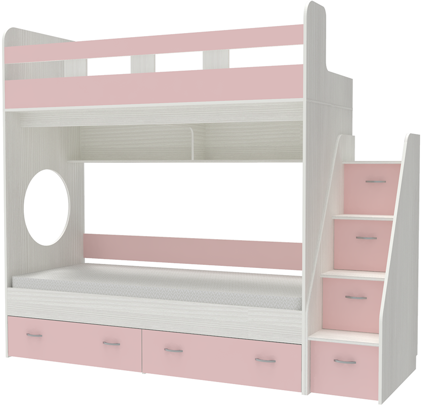 Вы можете купить Двухъярусная кровать КарИВи Юниор 1 80х190 Белое Дерево Розовый оптом в нашем магазине, предложим цену с оптовой скидкой.