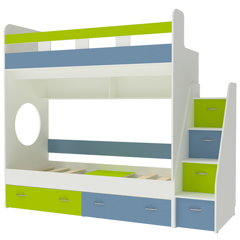 Двухъярусная кровать Юниор 1 80х190 Белый Лайм, Синий