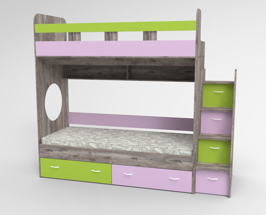 Вы можете купить Двухъярусная кровать КарИВи Юниор 1 80х190 Бетон Ирис Лайм оптом в нашем магазине, предложим цену с оптовой скидкой.