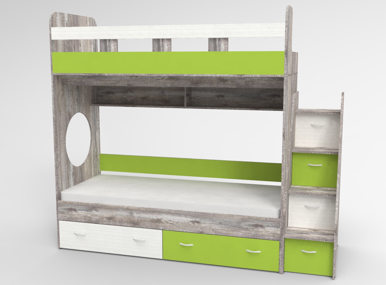 Вы можете купить Двухъярусная кровать КарИВи Юниор 1 80х190 Бетон Лайм, Белый оптом в нашем магазине, предложим цену с оптовой скидкой.