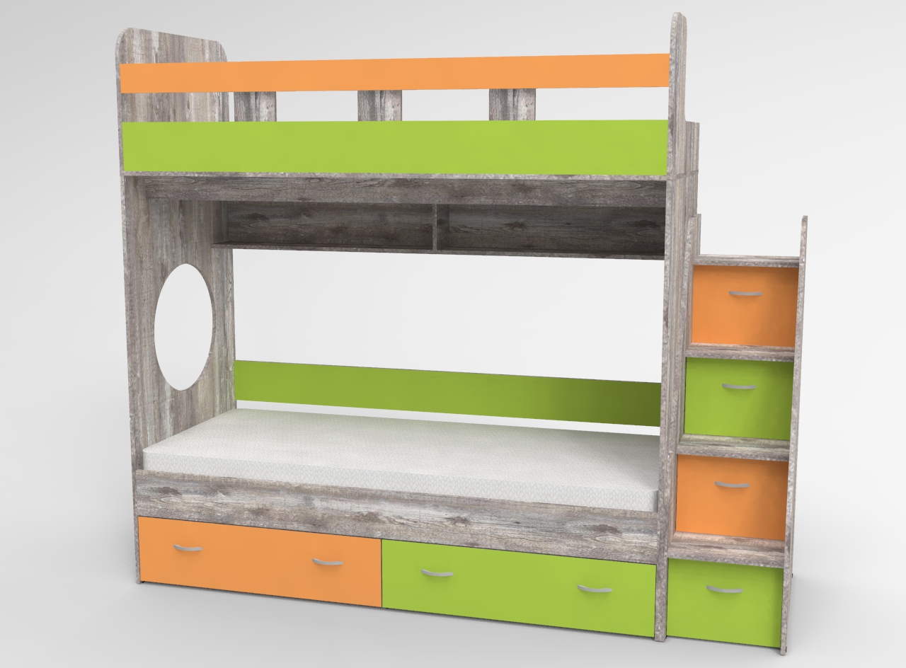 Вы можете купить Двухъярусная кровать КарИВи Юниор 1 80х190 Бетон Лайм, Оранжевый оптом в нашем магазине, предложим цену с оптовой скидкой.