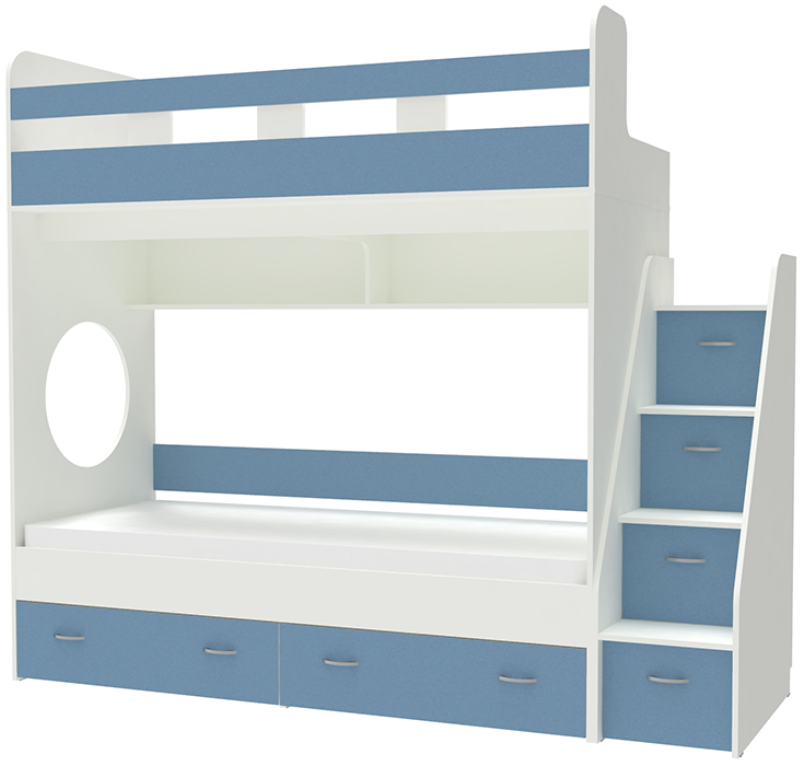 Вы можете купить Двухъярусная кровать КарИВи Юниор 1 80x160 Белый Светло-синий, голубой оптом в нашем магазине, предложим цену с оптовой скидкой.
