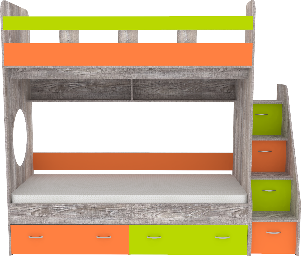 Двухъярусная кровать Юниор 1 80x160 Бетон Лайм, Оранжевый