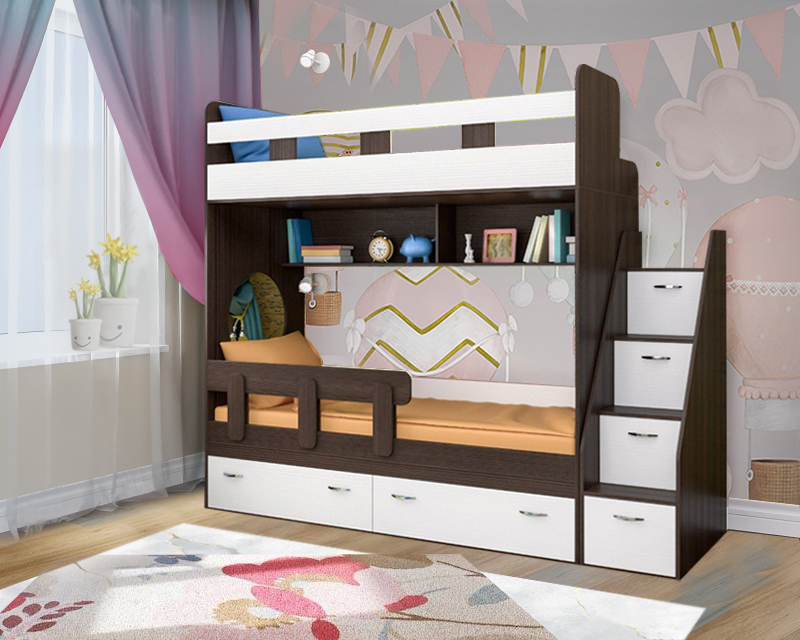Вы можете купить Двухъярусная кровать КарИВи Юниор 1 80x160 Венге Белое Дерево оптом в нашем магазине, предложим цену с оптовой скидкой.