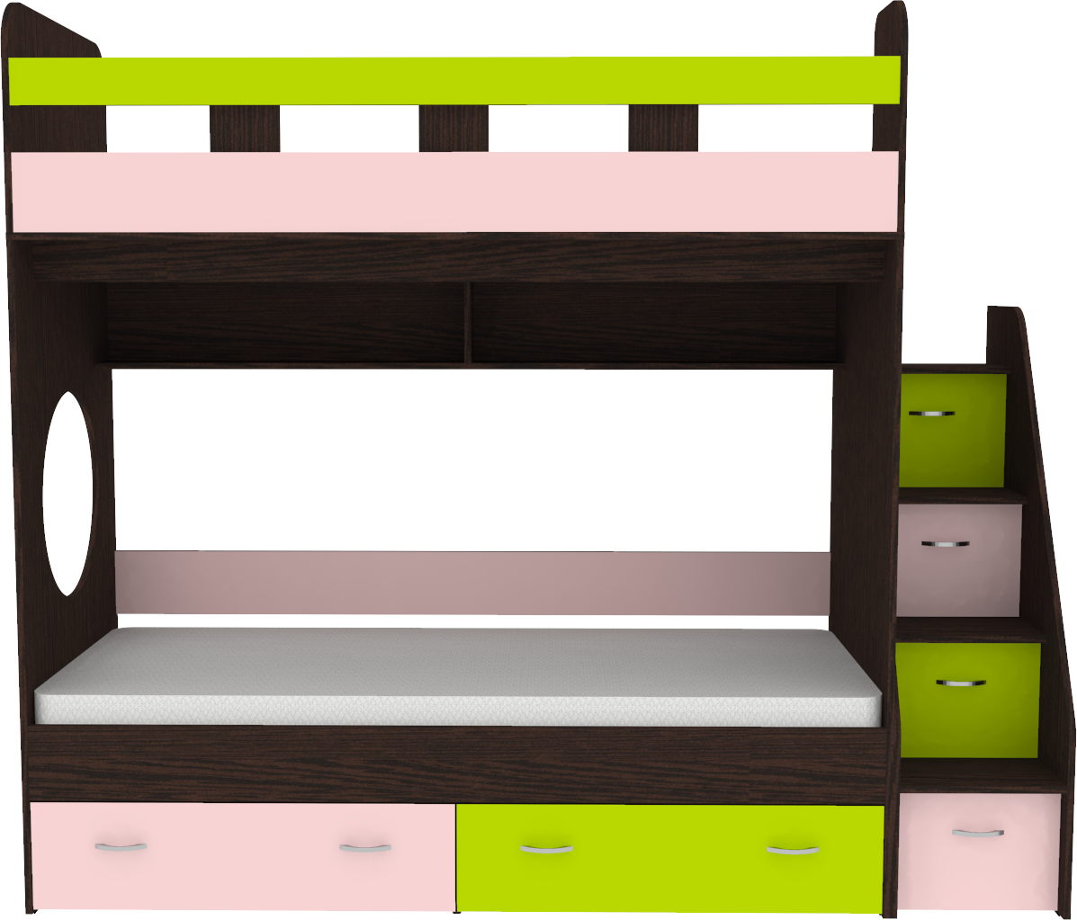 Двухъярусная кровать Юниор 1 80x160 Венге Розовй, Лайм